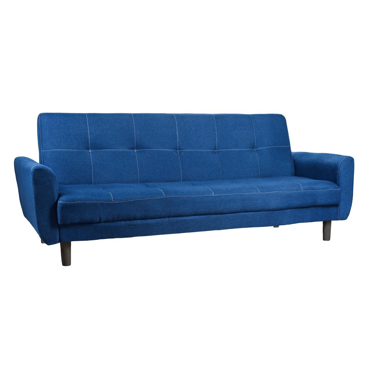 - Sleeper couches – Blue material – BEDS PLUS  this one is without arm rest.